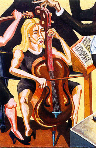 Measuring 5.5 feet tall by 110 feet long, "Modern Muses and the Arts" is located across from the entrance to the Vallejo Community Arts Foundation in Vallejo, CA. Work on the mural began in October 1999 and was finished in February 2000. Art Hazelwood had assistance from Susan Tirre, Daniel Robeski and Yumiko Masuzawa.
